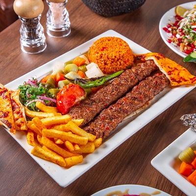 Minced meat spicy with grilled green chilly pepper & tomato served with french fries & bulgur