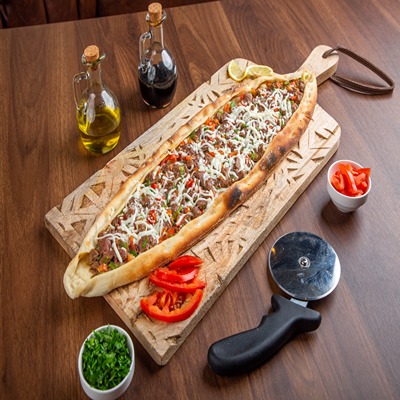 MEAT CUBES WITH CHEESE PITA