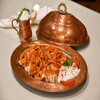 Doner chıcken served on pıta bread wıth butter, yoghurt, tomato sauce,grılled tomato and grıll chili