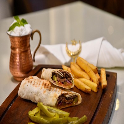 Lavash bread stuffed wıth doner meat, tomatoes,pıckles served wıth french frıes and tomato sauce